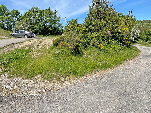 Desde el aparcamiento situado junto a la iglesia, toma el camino asfaltado que sale hacia la derecha.