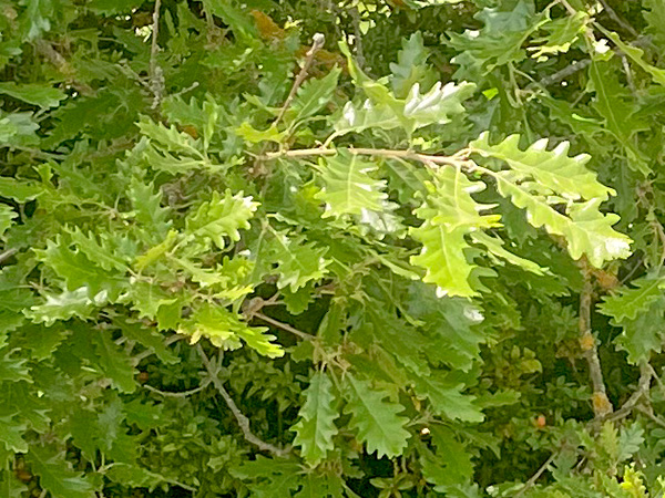 En estos comienzos comprobaremos la presencia de robles a ambos lados de la pista forestal. Podrás identificarlos fijándote en su hoja.