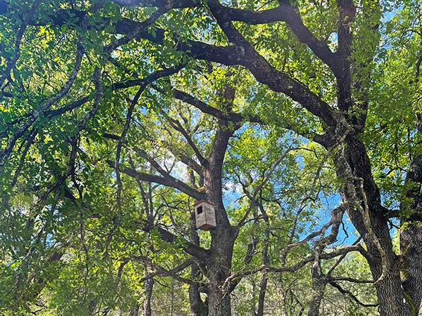 Si observas con atención, puede que veas alguna caja-nido colocada para ayudar a las aves del bosque.